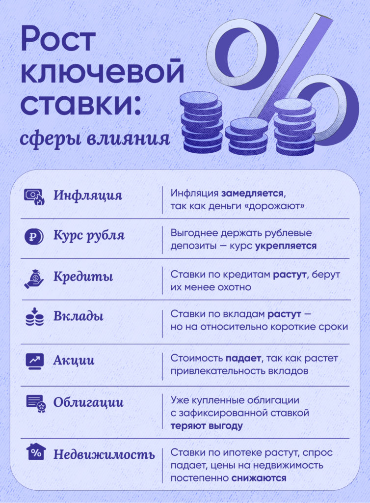 - Депозит: Если мы держим деньги на депозите в банке, то повышение процентной ставки позволит нам получить больший доход в виде процентов.